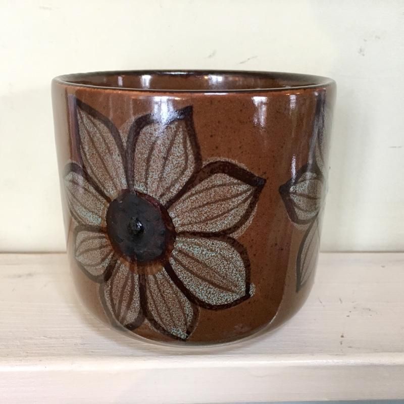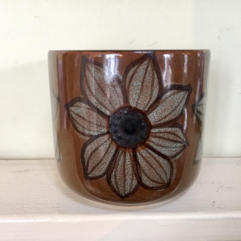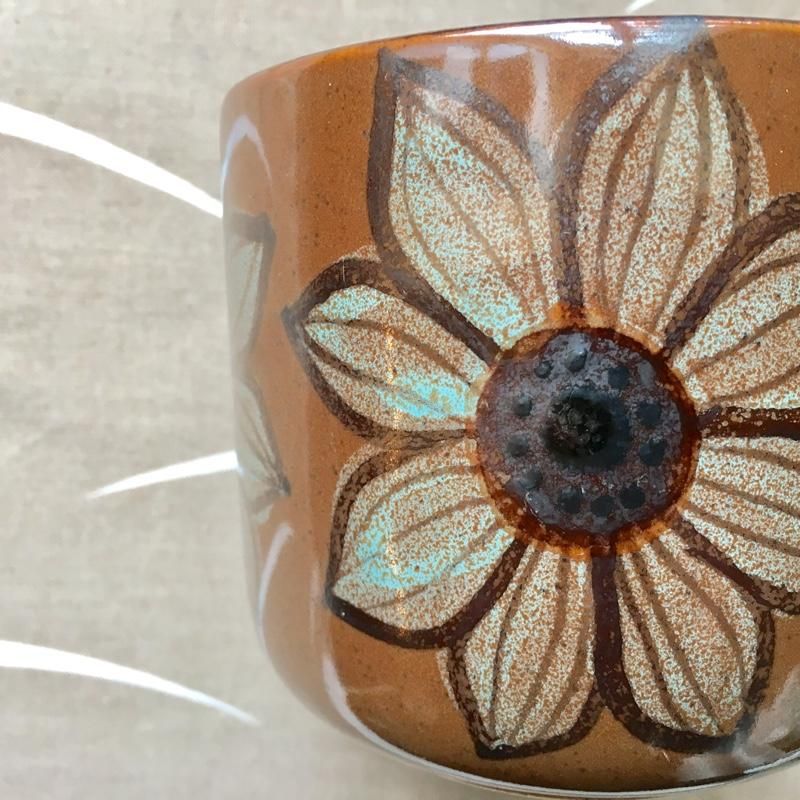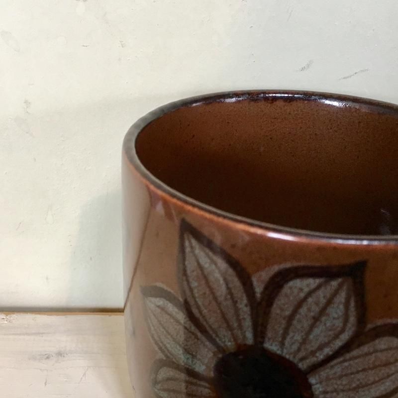落ち着いた茶色で、4面にハンドペイントでお花が描かれています。