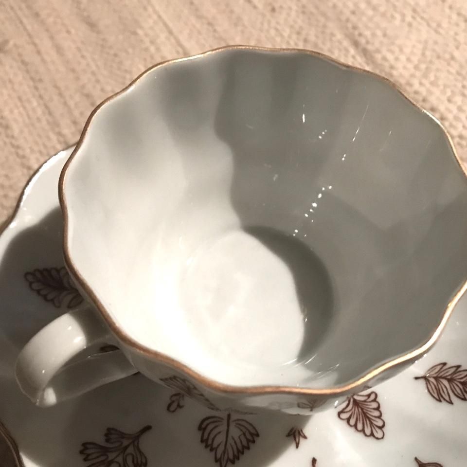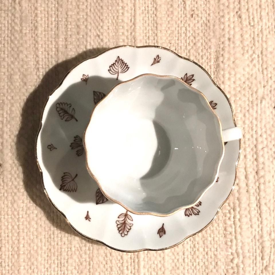 縁がゴールドになっていて、波をうったような珍しい形をしたカップです。