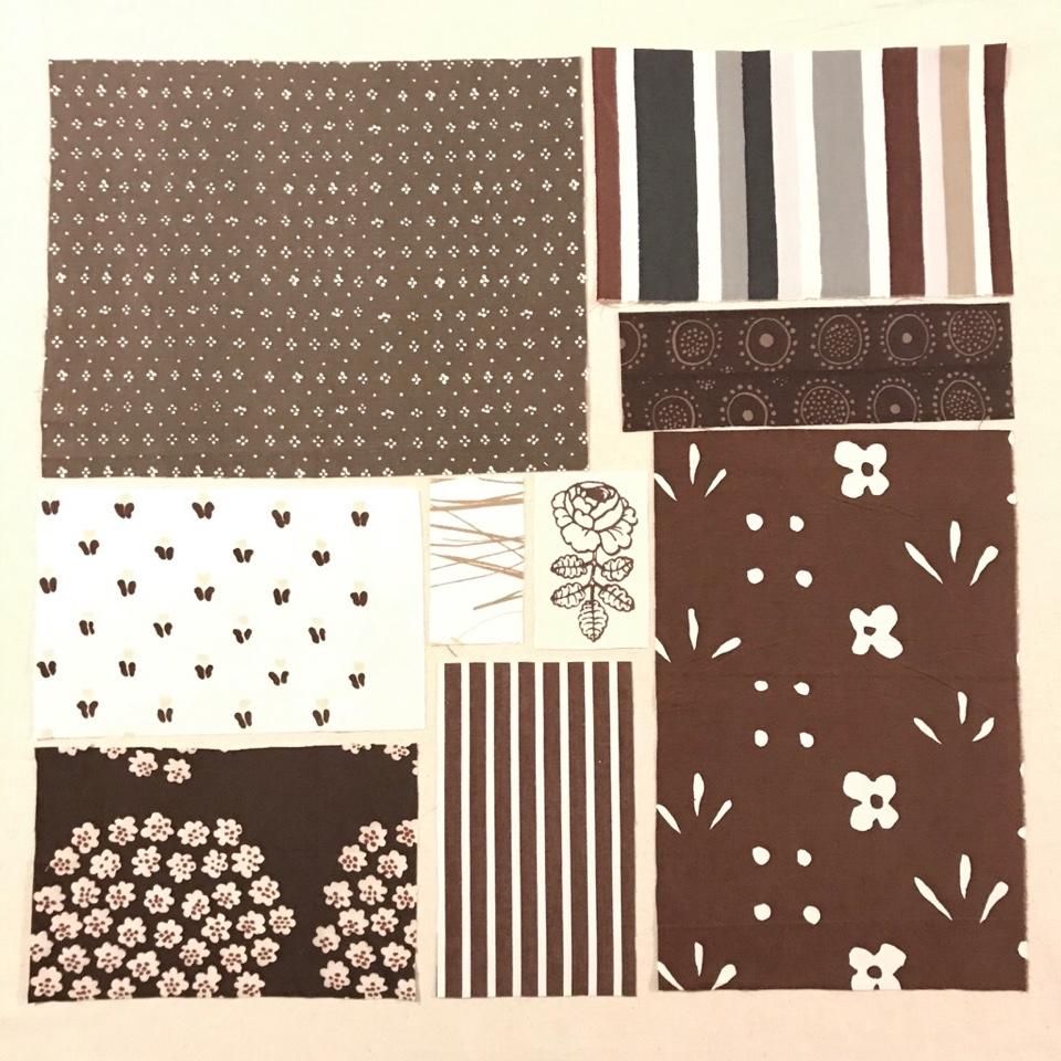 50×50cmの枠の中にハギレを並べています。