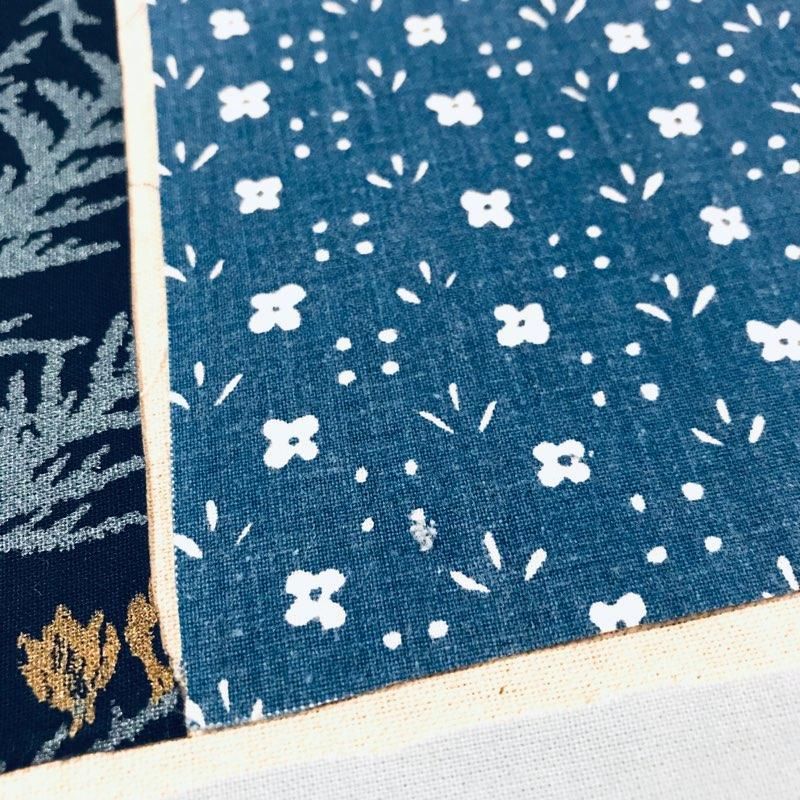50×50cmの枠の中にハギレを並べています。