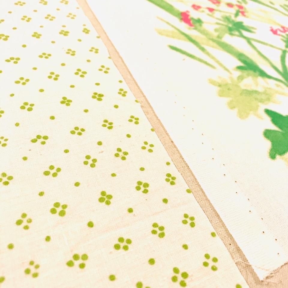 • 状態:ヴィンテージものはusedの布の為、色あせやダメージがある場合がございます。プリントのずれ、リピート線、白耳付き、柄の出方などは選べませんのでご了承下さい。たたみじわ、カット部分のほつれがあります。