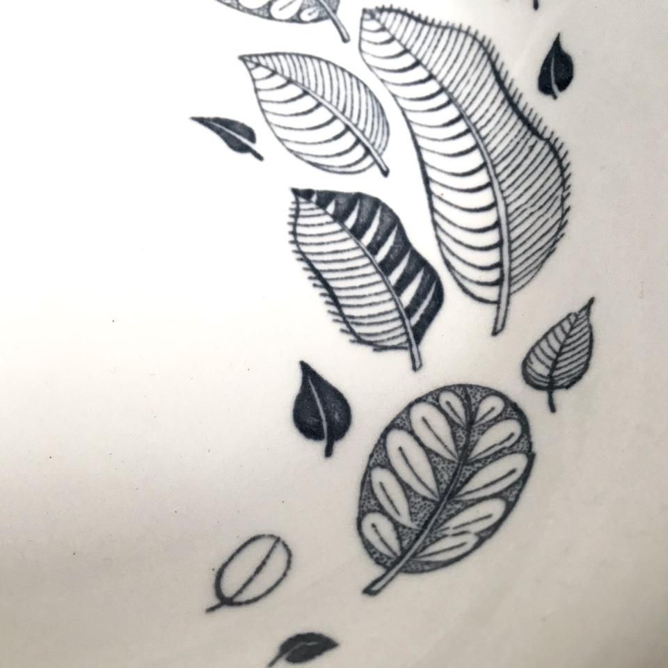 秋の枯れ葉が描かれています。