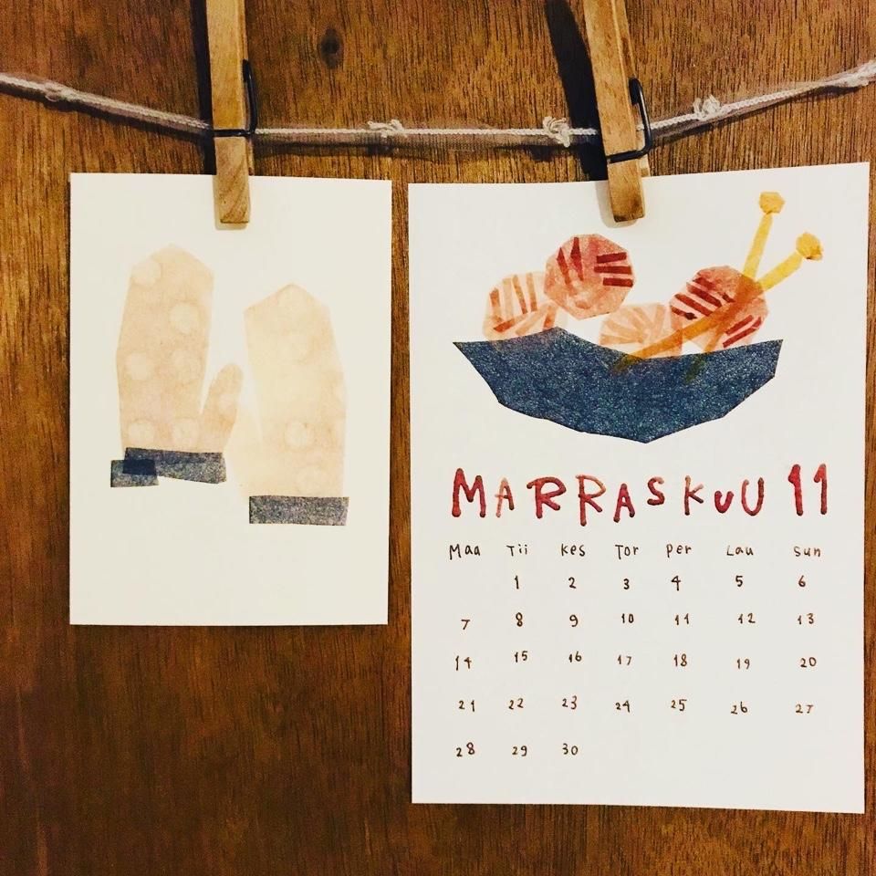 染め和紙の貼り絵とガラスペンとインクで描いた