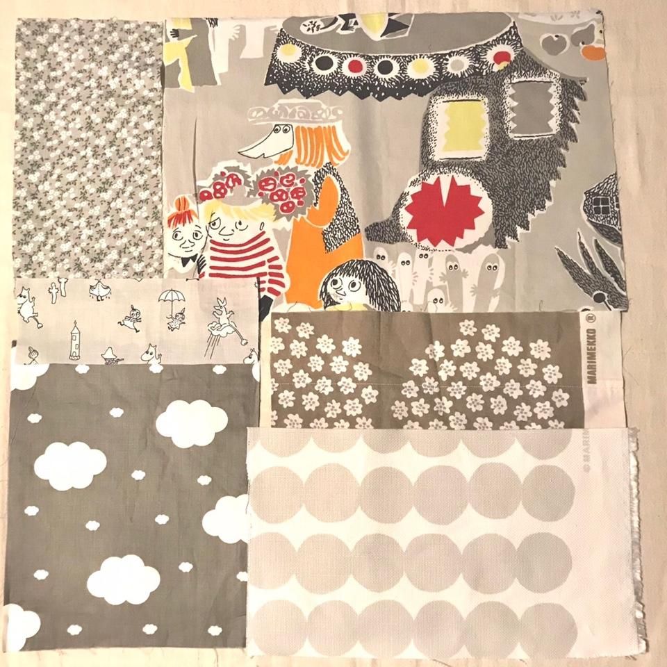 marimekkoの1960〜1980年代のヴィンテージ布やムーミンの日本未入荷・廃盤柄などのハギレが入っています。