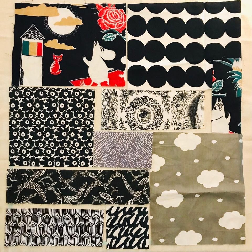 marimekkoの1960〜1980年代のヴィンテージ布やムーミンの日本未入荷・廃盤柄などのハギレが入っています。